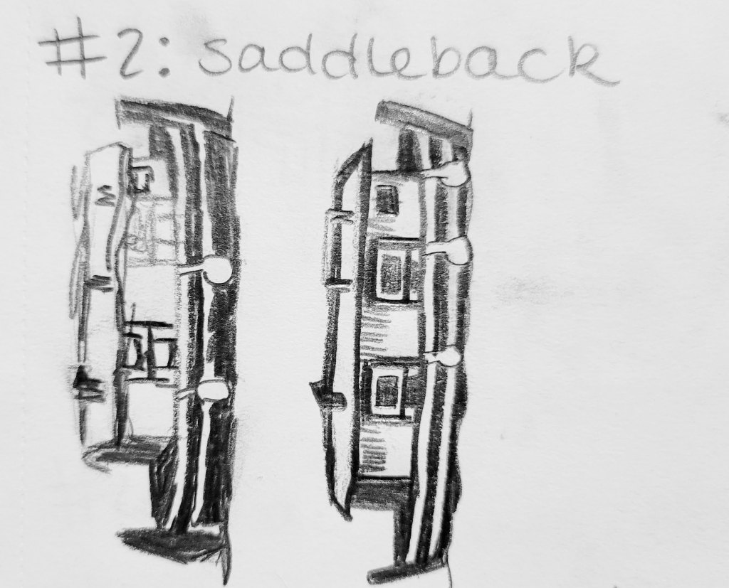The Saddleback houseboat only needed two sketches before I was comfortable putting it on the map. My process was already 3 times as efficient! Again, the pencil sketch was too big, so it lost some detail in the final version.
